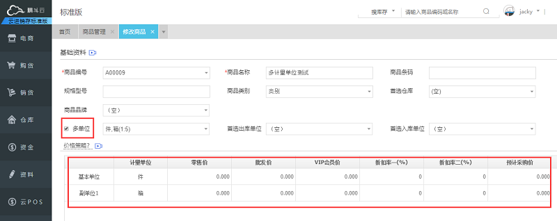 V3云进销存系统,多单位商品能设置价格策略吗?