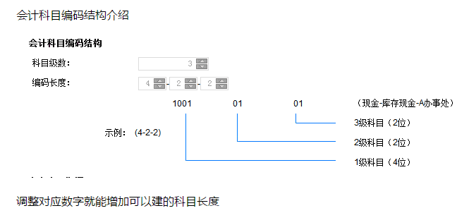 【注意】科目编码级次一旦改大不能再改小,例如不可以由4-3-3-3改为4-2-2-2。