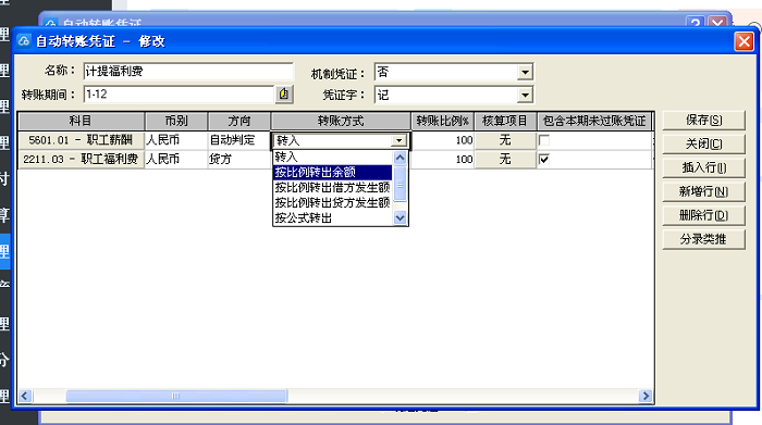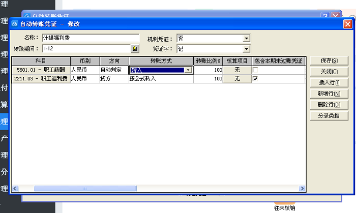 金蝶专业版16.0设置自动转账计提福利费凭证