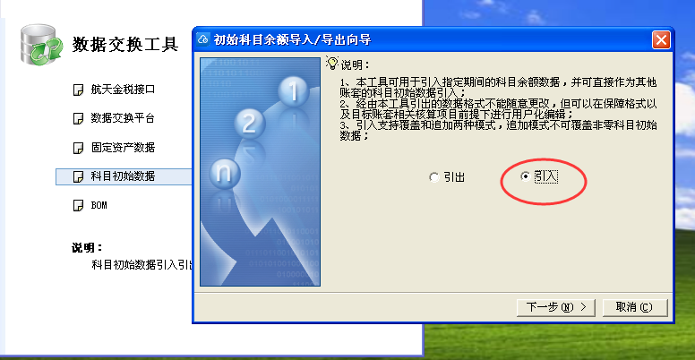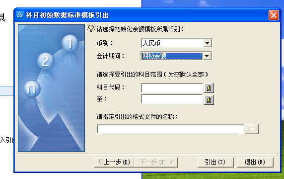 2、科目初始数据:导出指定期间数据,再引入数据。