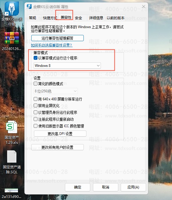 【解决方案】:桌面右击软件图标,选择【属性】-【兼容性】-勾选【以兼容模式运行这个程序】即可解决闪退问题