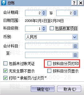 单击[账务处理]-[总账],在过滤界面勾选参数“按科目分页打印”即可。