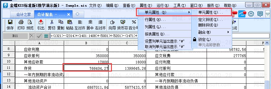 1、单击[报表与分析]-[资产负债表],单击选中单元格;