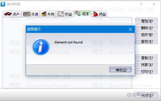 标准版(迷你版)打开科目界面提示ELement not found ?如下图所示: