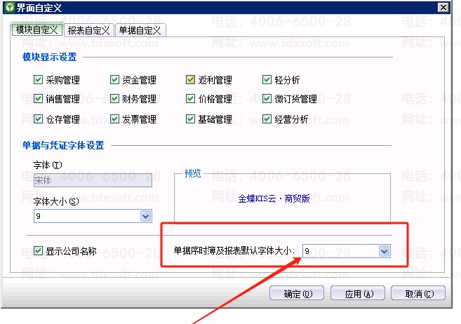 kis商贸版单据序时簿以及报表的默认字体大小怎么设置?