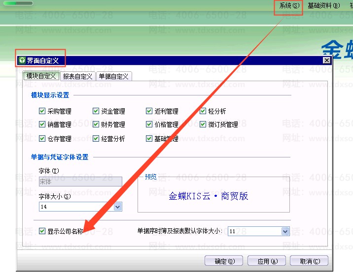 金蝶商贸版9.0,如何隐藏不显示公司名称。