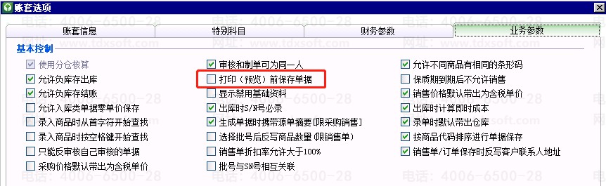 在[账套选项]-[业务参数]页签取消[打印(预览)前保存单据]即可。