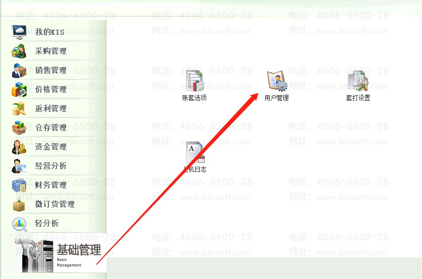 进入[基础管理]模块,单击[用户管理],选中该用户单击[授权],选择[基础资料],授予对应的[辅助资料]权限。