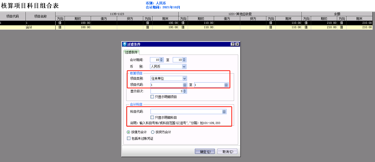 金蝶kis标准版财务系列如何查询某个核算项目中所有科目的发生?