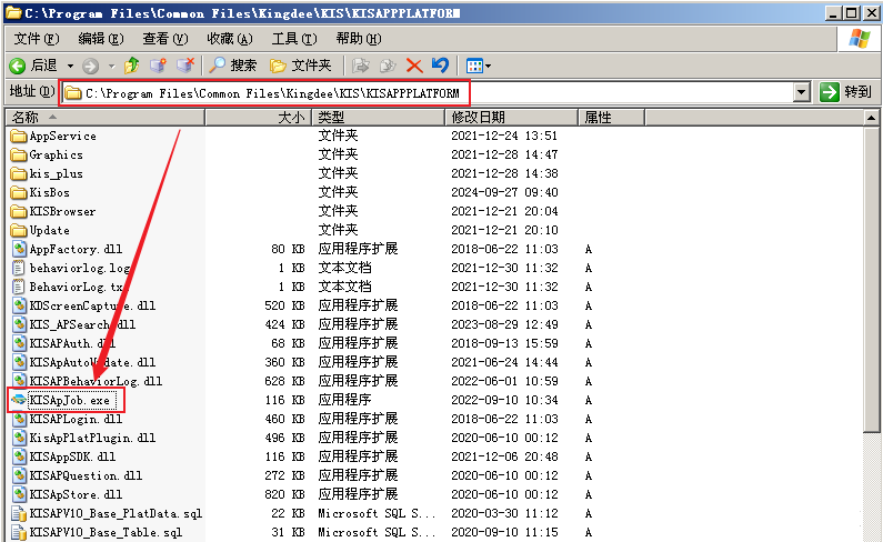 方式二:在安装了相同产品及补丁环境的电脑路径【C:\Program Files\Common Files\Kingdee\KIS\KISAPPPLATFORM】中找到“KISApJob.exe”文件,复制发送“KISApJob.exe”文件到有异常电脑,并将文件放到相同路径【C:\Program Files\Common Files\Kingdee\KIS\KISAPPPLATFORM】下。