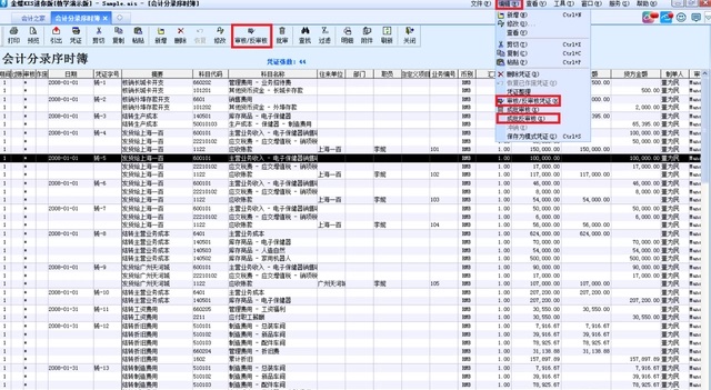 若想反审核当月的所有凭证,可以点击右上角编辑菜单下的成批反审核,再在弹出的对话框选择是即可。