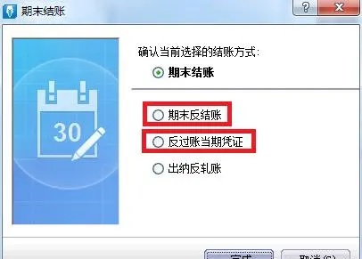 如果要修改以前月份的凭证,就选中“期末反结账”后点击完成,先反到要修改凭证的对应期间,在进入期末结账这里选中“反过账当期凭证”后点击完成;
