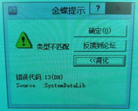 KIS云旗舰版在打开基础资料,比如打开科目、客户等,出现金蝶提示“类型不匹配”现象。