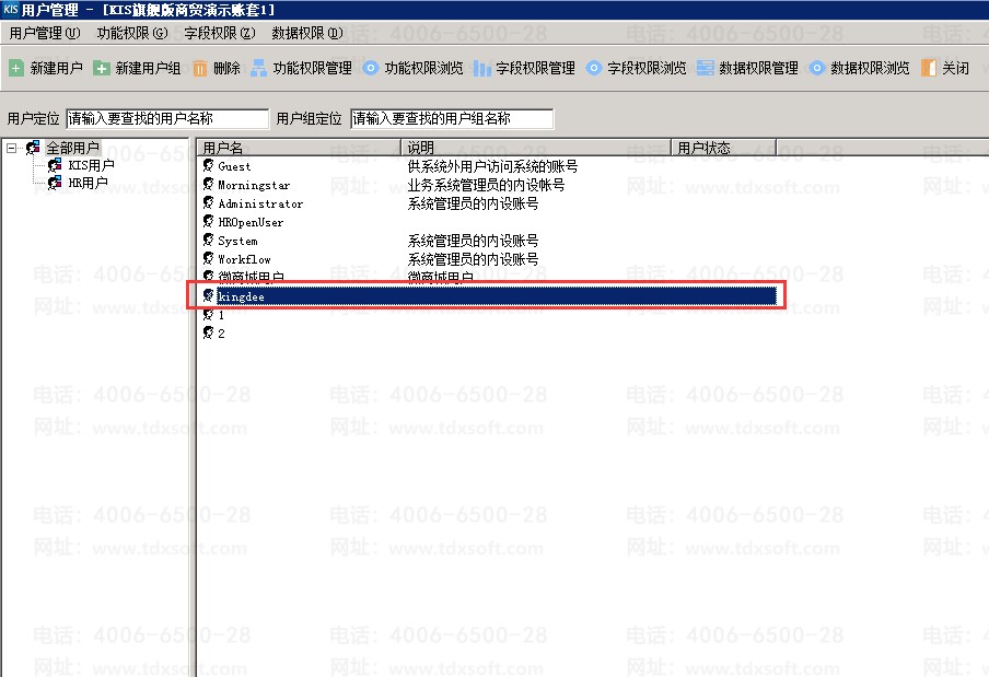 3、如果登陆计算机的域用户没有与KIS云旗舰版用户绑定,或者使用工作组环境下的本地用户登录,选择[域用户身份登录],KIS云旗舰版会以guest用户身份登录,单击任何模块都会提示没有操作权限。