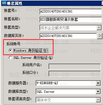 解决方案:账套管理中对应账套的属性的系统账号改为“SQL Server 身份验证”,输入系统用户sa,并输入sa密码点击确定,重新登录主程序即可。