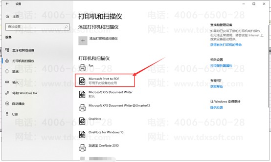 二、安装PDF虚拟打印机1、 在Win10操作系统中自带有PDF虚拟打印机(Microsoft Print to PDF),在设置-打印机和扫描仪中可以找到。