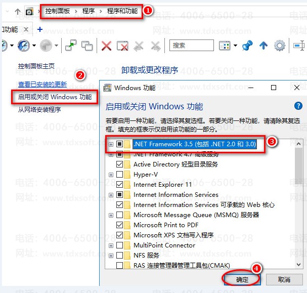 2.在“Windows功能”里选择 .Net Framework 3.5 点 确定。