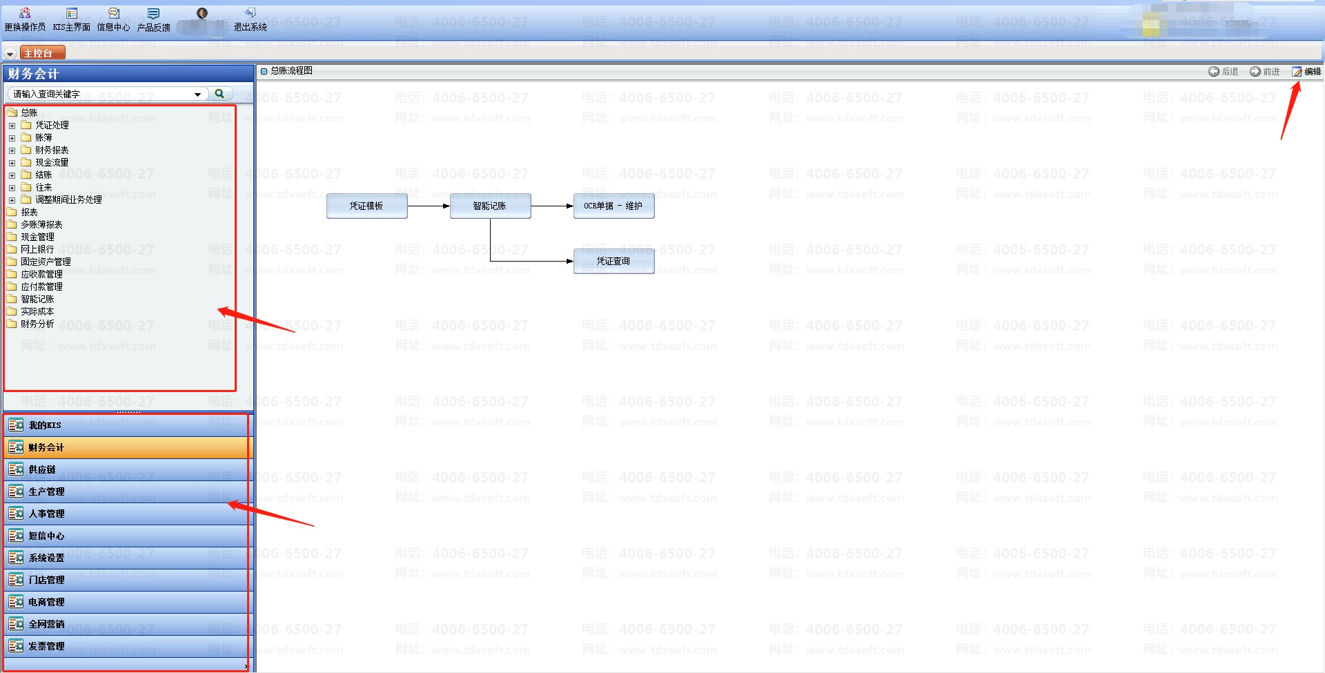 可以先切换到KIS主界面,然后在系统-设置-主控台编辑,把不需要的隐藏,然后在切换流程图界面看下。