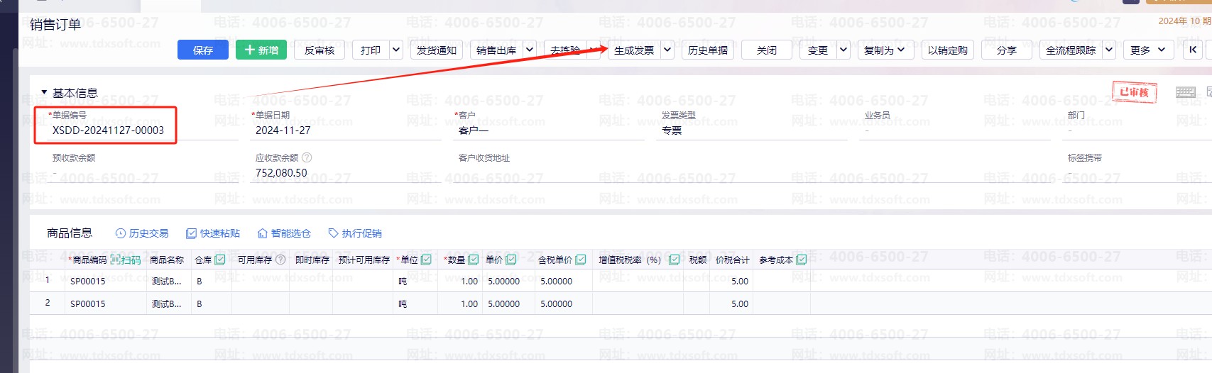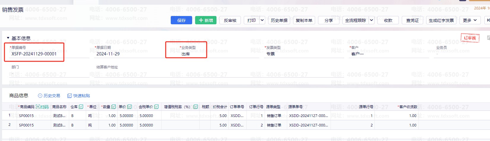 销售订单直接下推发票,