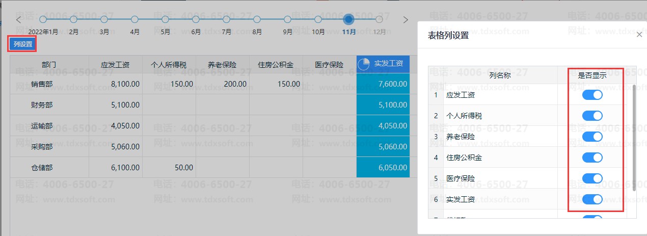 工资核算项也可自定义设置字段的查看