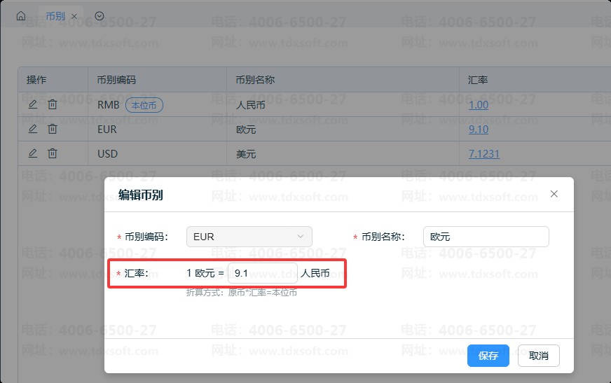 1、新增币别时录入币别对应的汇率;
