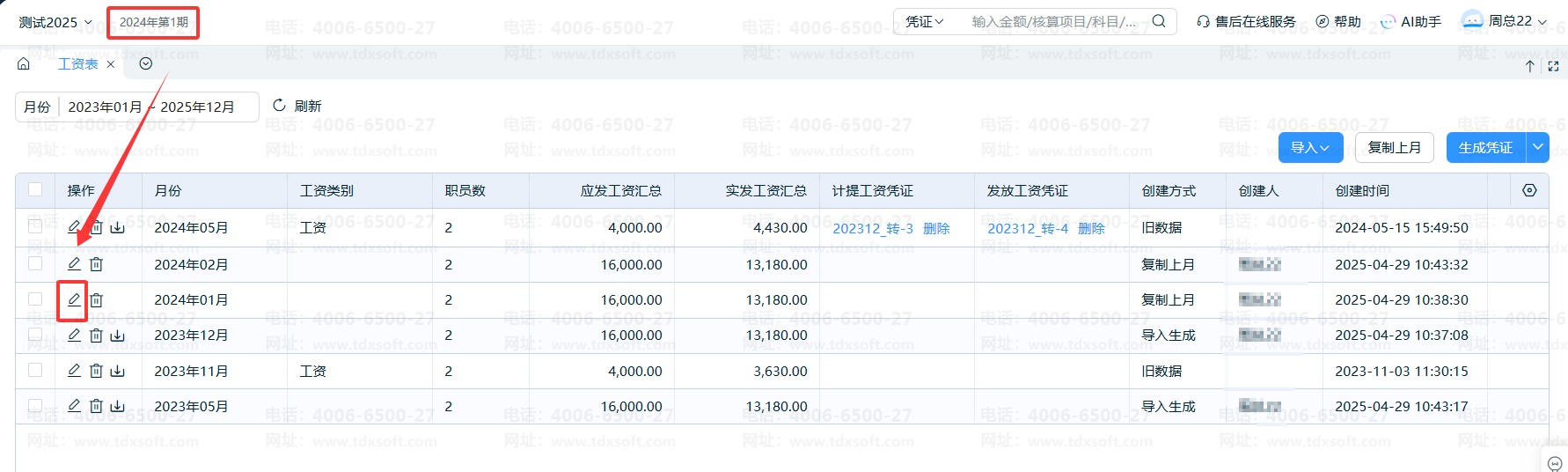 说明:工资表导入提示已导入成功,但在工资表列表查询不到,请检查导入的工资表的会计期间与系统里查询的会计期间是否一致。