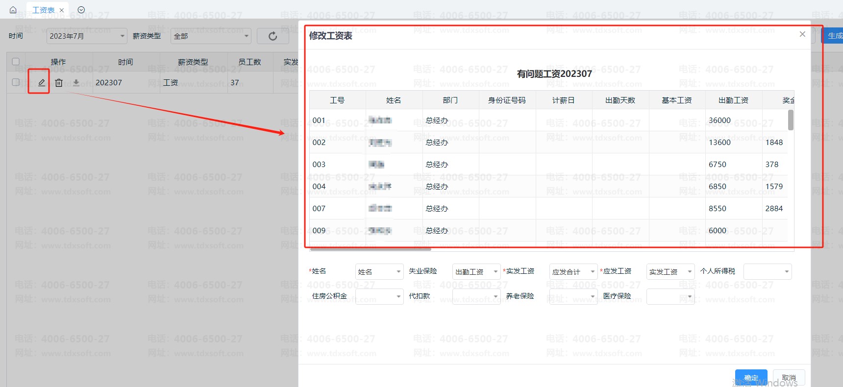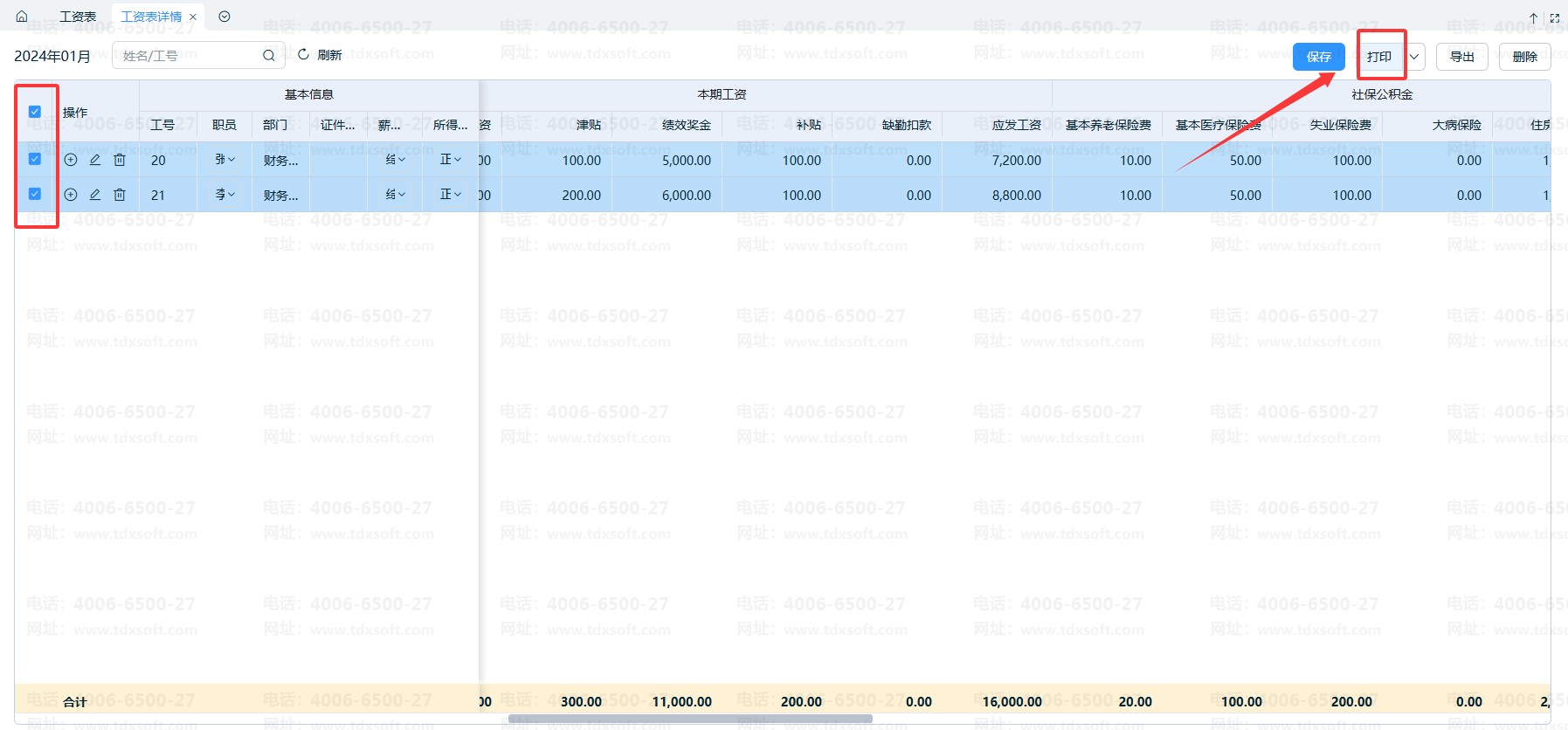 说明:工资表打印格式系统默认PDF格式,目前不支持自定义。目前仅支持打印当前会计期间及以后会计期间的工资表。