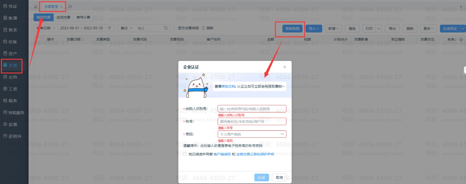 精斗云云会计启用智能取票,进行企业认证时提示“该企业信息已在发票云认证注册,请联系管理员合并租户信息”