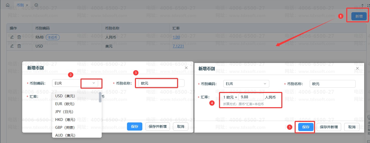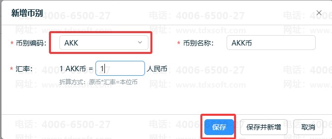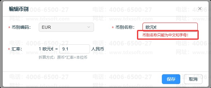 ⑤完成币别编辑后,点击【保存】即可。