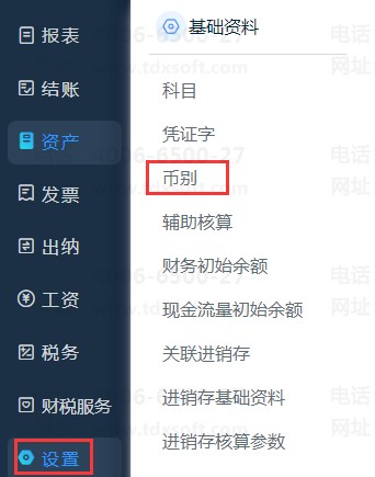 1、依次点击【设置】-【币别】