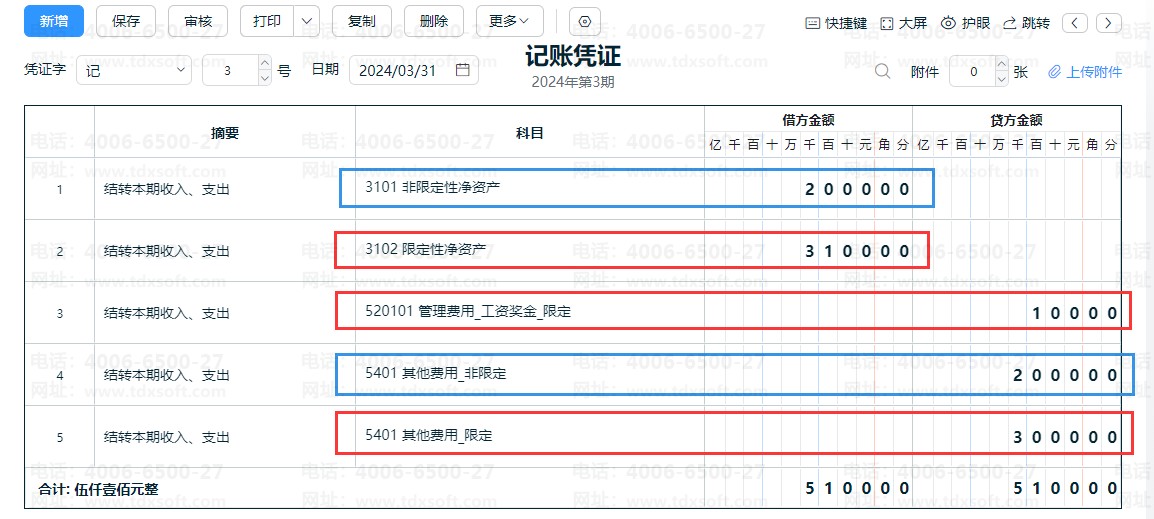 2、结转损益凭证由系统自动结转,按凭证上指定的限定性及非限定性,结转至限定性资产或是非限定性资产中。