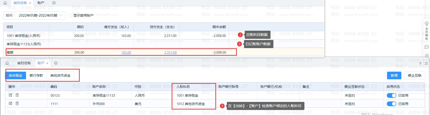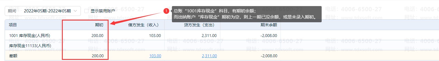2、若期初有差额,请分别检查出纳账户和总账科目以前期间数据,看是否以前期间已有差额,导致当期期初不一致;若是启用期间的话,检查账户与总账的期初录入是否一致。