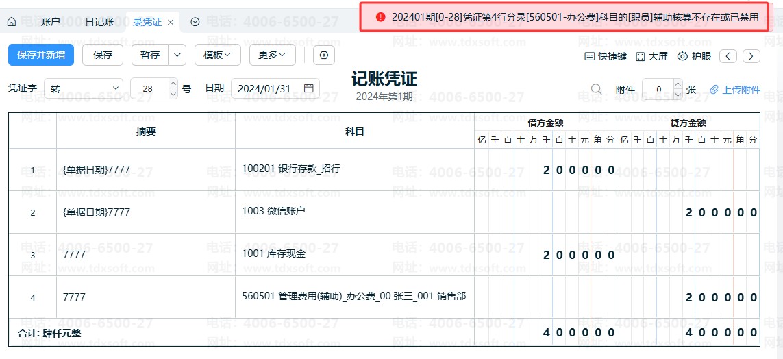 3、账户入账科目、账户对方科目及关联的辅助核算明细被禁用。
