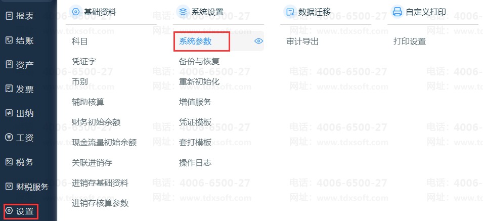 点击打开【设置】-【系统参数】界面