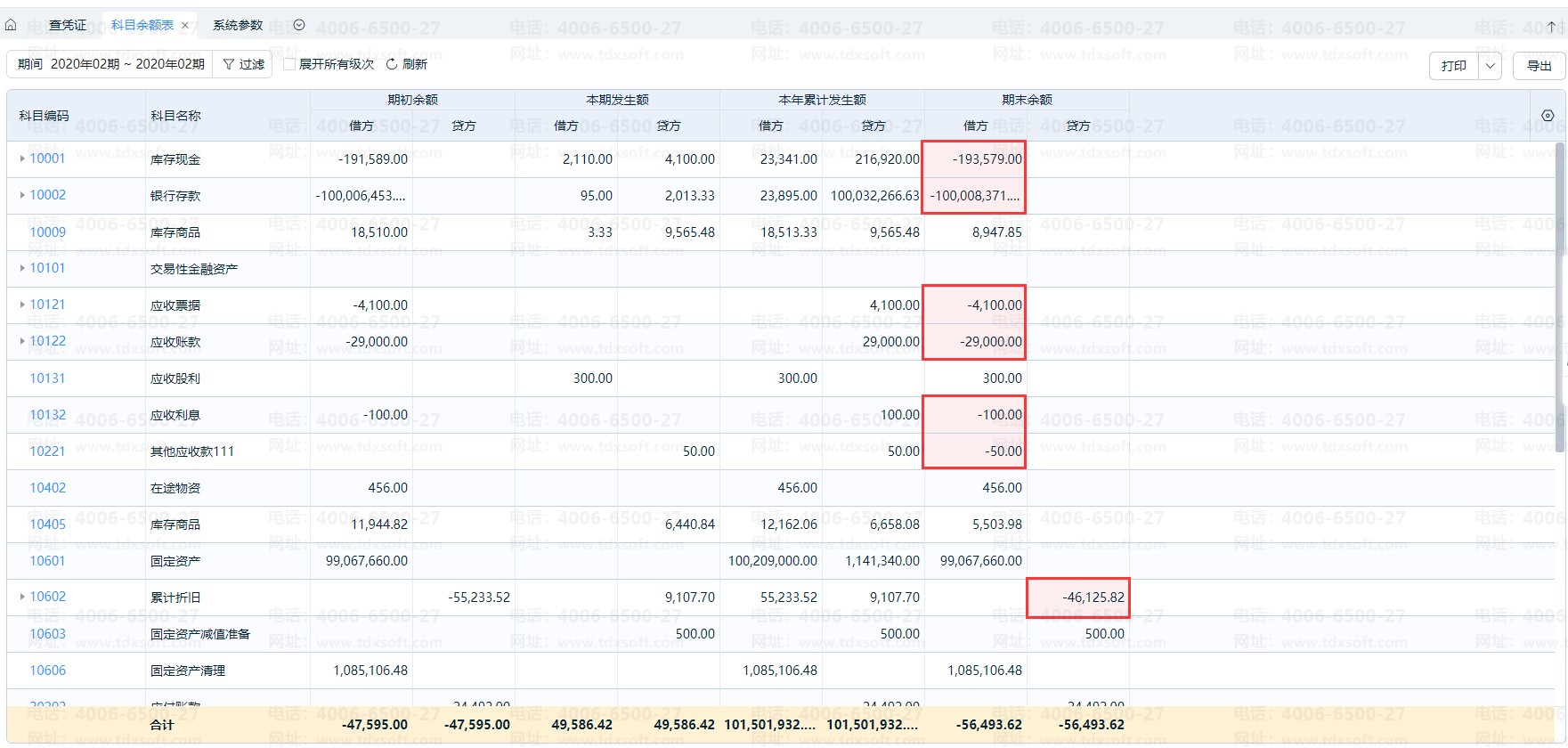 例如: 库存现金期末余额是贷方100元,那账簿方向就显示“借”,金额是-100(红色格子);如果不勾选“账簿余额方向与科目方向相同”,那库存现金期末余额就显示方向为“贷”,余额为100。