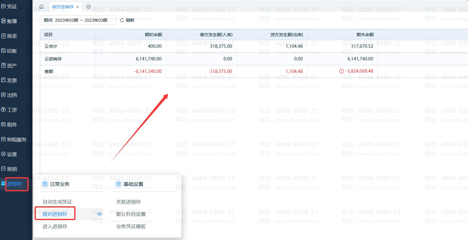 1、若云会计已升级新版,【核对进销存数据】菜单已更新至左下角【进销存】-【核对进销存】菜单,操作流程可参上述步骤。