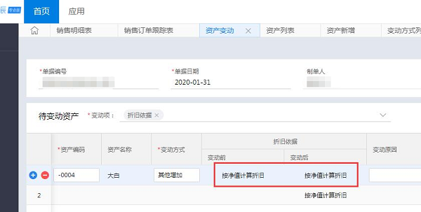 变动后默认的是当前折旧依据,系统不允许修改的。可通过先做固定资产清理,再新增资产卡片的方式变通处理。