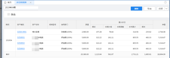 1、折旧明细表可按期查询所有入账的资产折旧情况。