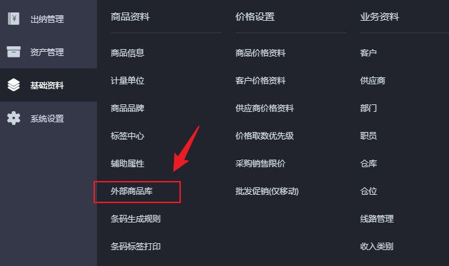 1) 智能匹配:录入或引入外部商品资料后,根据商品条码和商品名称自动匹配双方商品的,建立绑定关系。