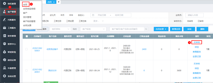 注:如果没有反审核的权限,需联系公司管理员反审核或者给职员反审核的权限后再修改合同