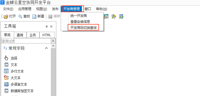 1、【开发商码管理】 - > 【开发商码切换查询】,如下图: