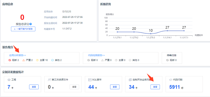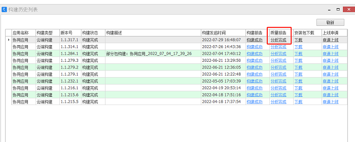 应用管理-构建的应用-更多操作-查看构建历史-质量报告