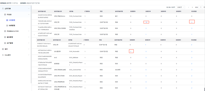 这里会显示整个应用的定制化开发内容,包括sql文件,插件,引用进应用的第三方组件,业务对象。主要对业务对象进行详细分析,分析新增的控件,操作,菜单,插件,以及修改的内容,点击具体的蓝色数字可以跳转到具体分析界面
