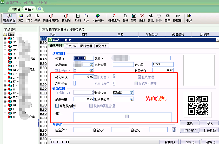 商贸版基础资料-商品资料界面显示异常,如图所示: