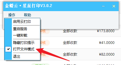 解决办法:找到安装在电脑桌面的【金蝶云 星辰打印】,打开后,去掉【操作】菜单下的“文件打印模式”前面的勾选即可(点一下)