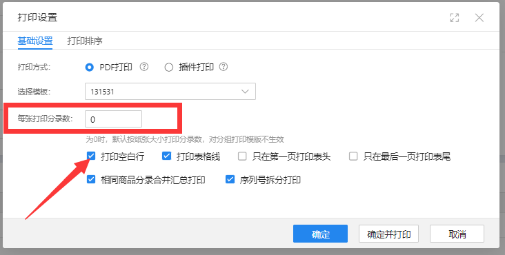 希望打印时,按单据数据行打出,不打印空白行,或者设置按一张打印纸大小打满行数。