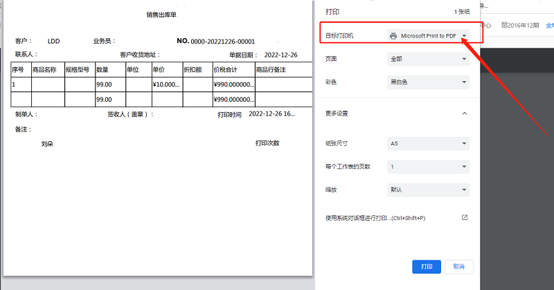 1、PDF打印的情况下:点击打印进入预览界面,右上角点击打印图标,选择对应的目标打印机;