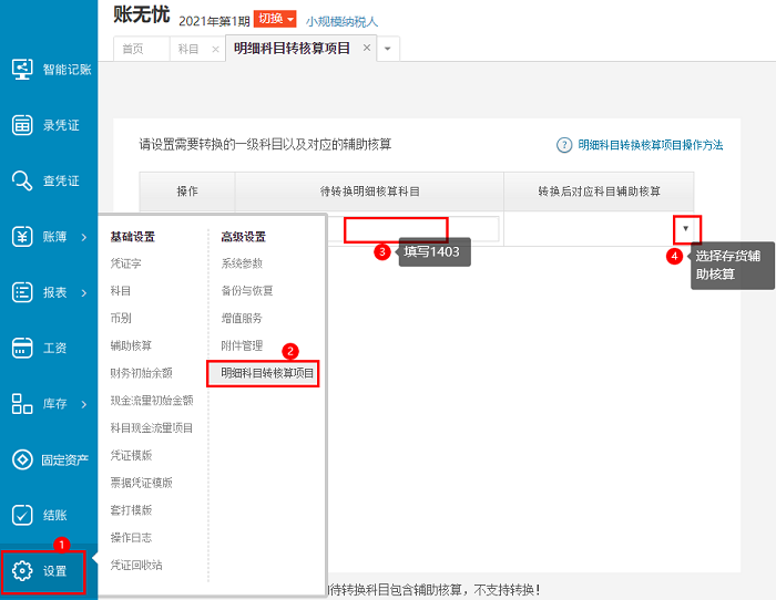 方案一:在1403科目新增一个明细科目,将1403一级科目的数据转移到明细科目上。再操作明细科目转辅助核算