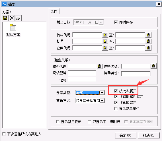 [主控台]-[仓存管理]-[即可库存查询],进入过滤界面,勾选[按批次展开]即可。