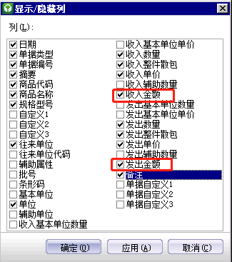 1、 在查看界面点击[查看]-[显示/隐藏列]勾选显示对应字段;